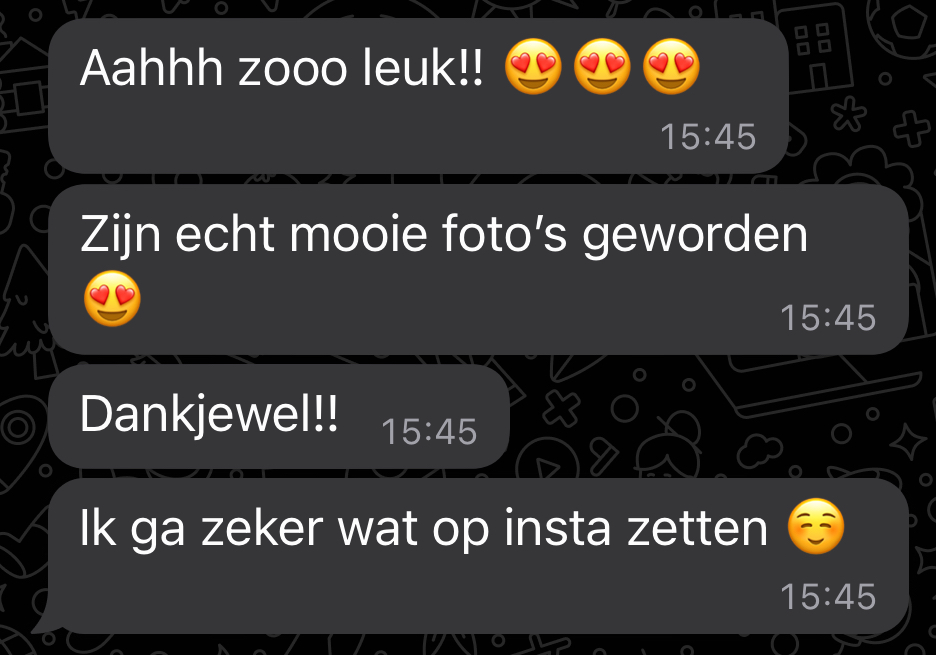 Ze heeft leuke ideeën die mooie en unieke foto’s opleveren. Vooral lekker in beweging en niet van die statige plaatjes. Kyra’s echte foto passie zijn foto’s tegen een ondergaande zon (golden hour). Hier kan je ook echt niet om heen maar het levert ook echt fantastische foto’s op. Wij zijn echt super blij met het eindresultaat en voor eventuele toekomstige gezin en/of familiefoto’s twijfelen we dan ook geen seconden om Kyra weer te vragen.